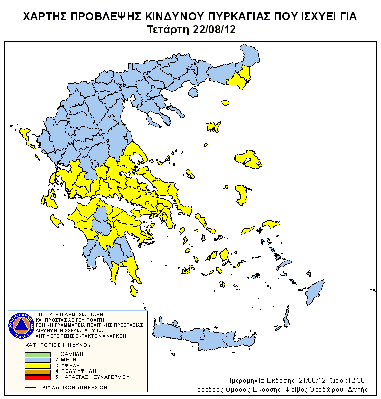 Ημερήσιος Χάρτης Πρόβλεψης Κινδύνου Πυρκαγιάς 22/08/2012