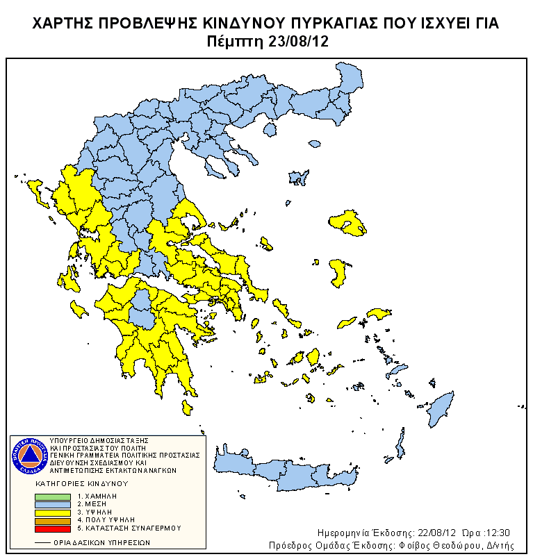 Ημερήσιος Χάρτης Πρόβλεψης Κινδύνου Πυρκαγιάς 23/08/2012