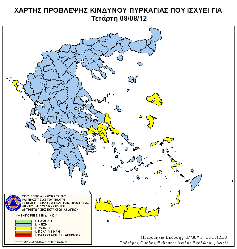 Ημερήσιος Χάρτης Πρόβλεψης Κινδύνου Πυρκαγιάς 08/08/2012