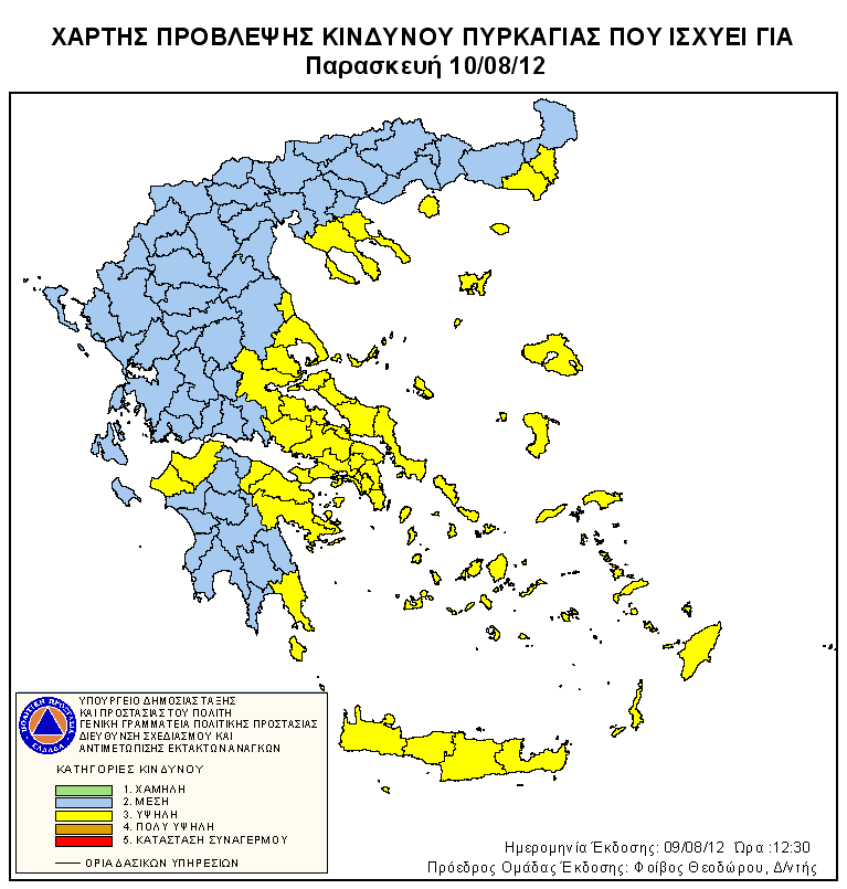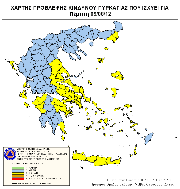 Ημερήσιος Χάρτης Πρόβλεψης Κινδύνου Πυρκαγιάς 09/08/2012