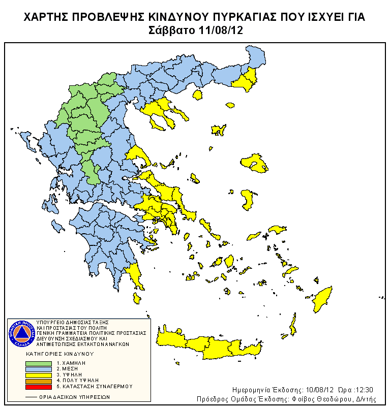 Ημερήσιος Χάρτης Πρόβλεψης Κινδύνου Πυρκαγιάς 10/08/2012