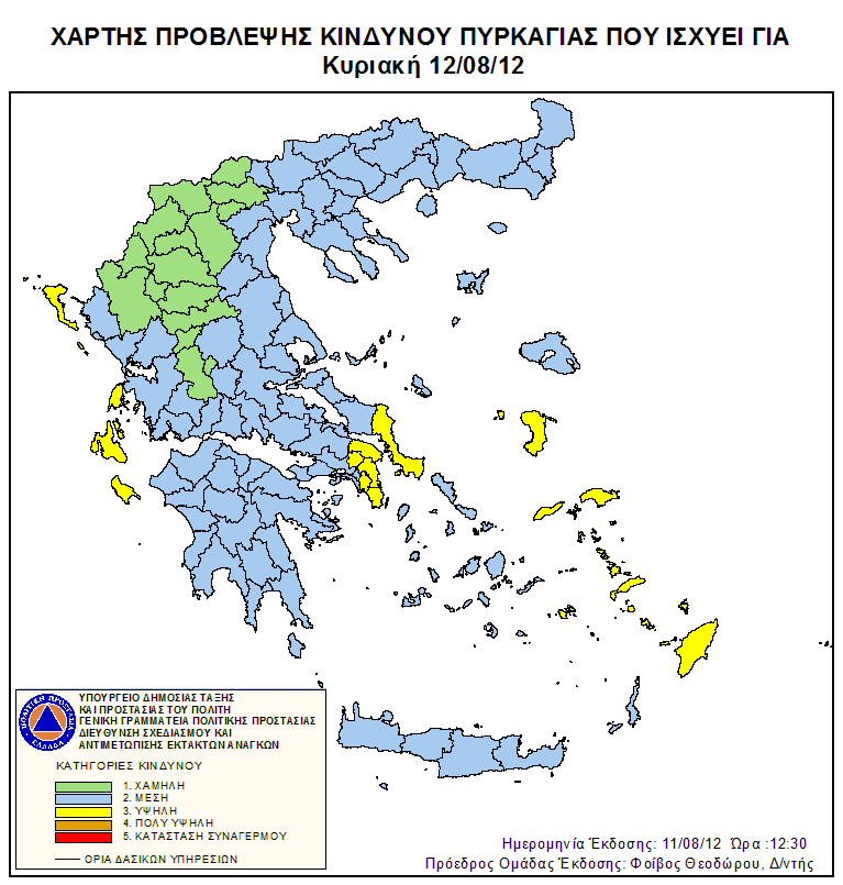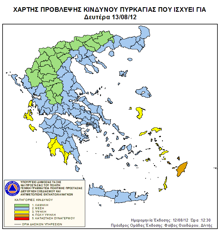 Ημερήσιος Χάρτης Πρόβλεψης Κινδύνου Πυρκαγιάς 12/08/2012