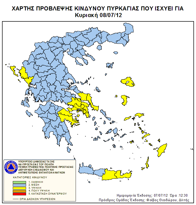 Ημερήσιος Χάρτης Πρόβλεψης Κινδύνου Πυρκαγιάς 08/07/2012