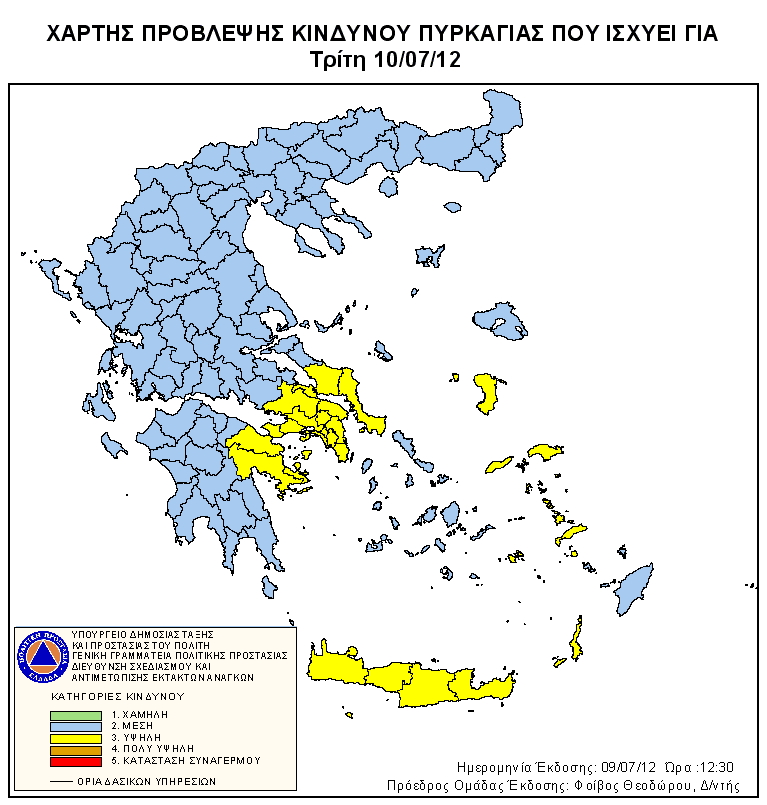 Ημερήσιος Χάρτης Πρόβλεψης Κινδύνου Πυρκαγιάς 09/07/2012