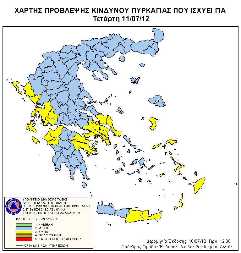 Ημερήσιος Χάρτης Πρόβλεψης Κινδύνου Πυρκαγιάς 12/07/2012