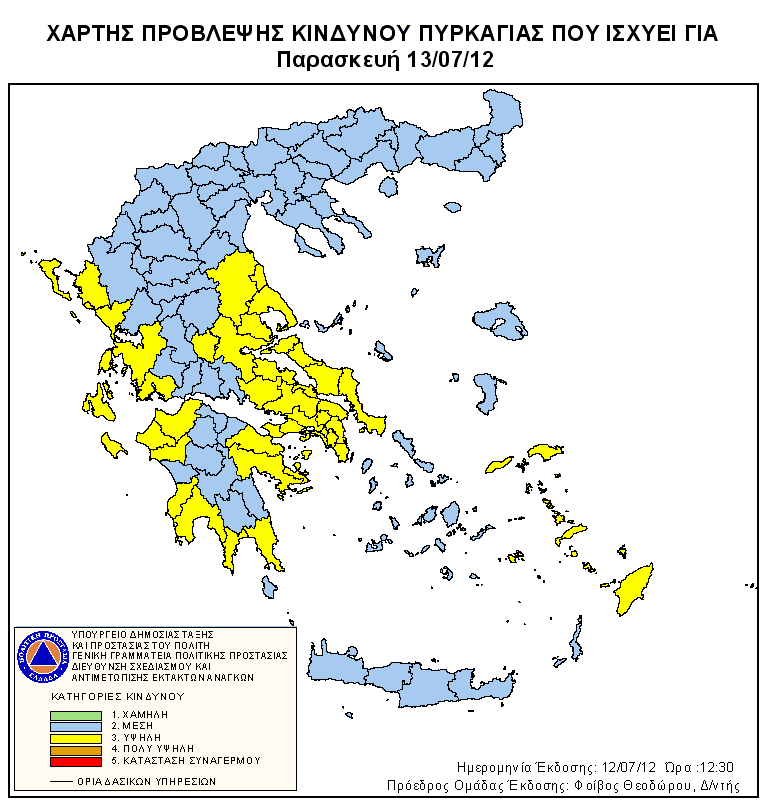 Ημερήσιος Χάρτης Πρόβλεψης Κινδύνου Πυρκαγιάς 13/07/2012