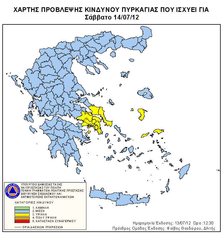 Ημερήσιος Χάρτης Πρόβλεψης Κινδύνου Πυρκαγιάς 14/07/2012
