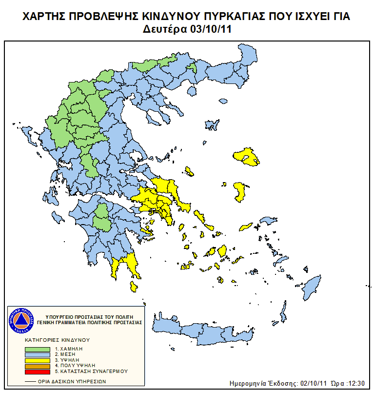 Ημερήσιος Χάρτης Πρόβλεψης Κινδύνου Πυρκαγιάς 03/10/2011