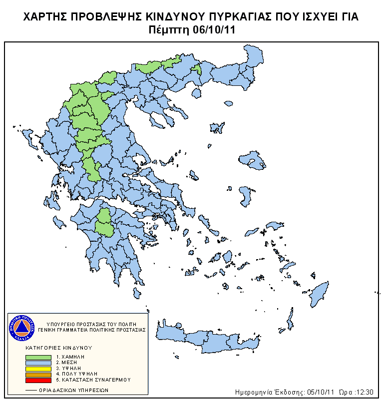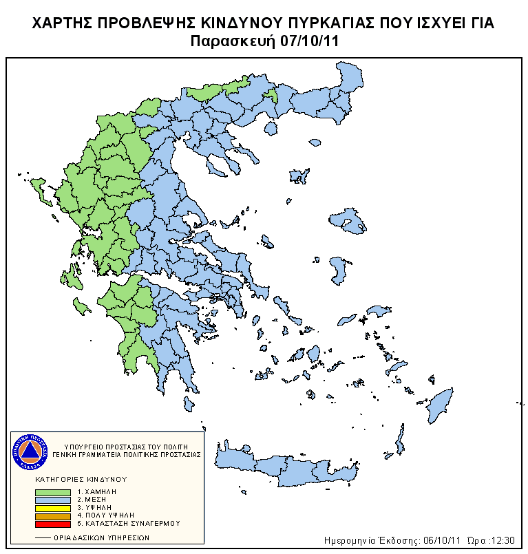 Ημερήσιος Χάρτης Πρόβλεψης Κινδύνου Πυρκαγιάς 06/10/2011
