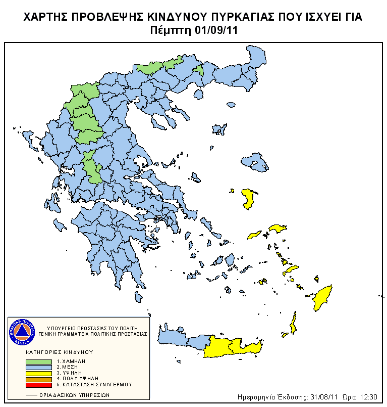 Ημερήσιος Χάρτης Πρόβλεψης Κινδύνου Πυρκαγιάς 01/09/2011