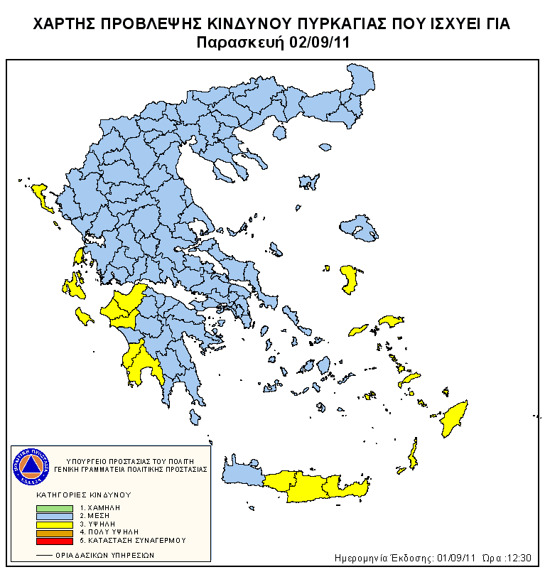 Ημερήσιος Χάρτης Πρόβλεψης Κινδύνου Πυρκαγιάς 02/09/2011