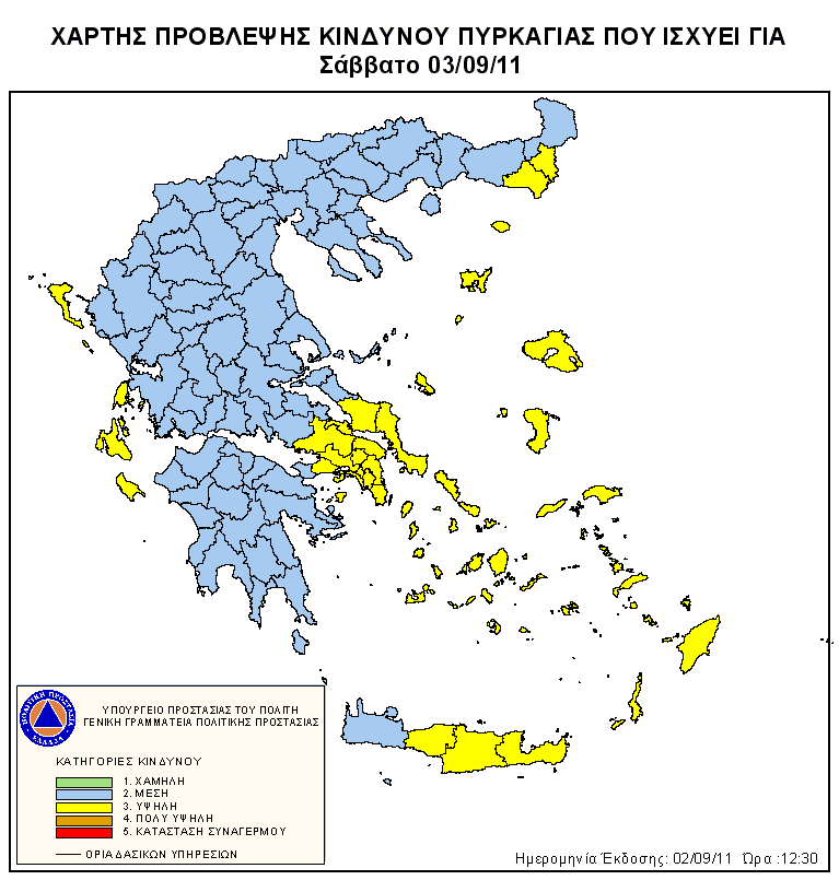 Ημερήσιος Χάρτης Πρόβλεψης Κινδύνου Πυρκαγιάς 03/09/2011