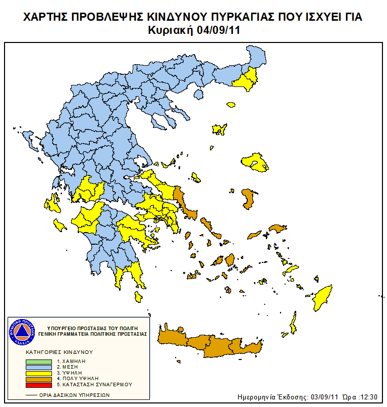 Ημερήσιος Χάρτης Πρόβλεψης Κινδύνου Πυρκαγιάς 04/09/2011