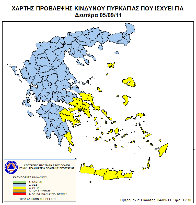 Ημερήσιος Χάρτης Πρόβλεψης Κινδύνου Πυρκαγιάς 05/09/2011