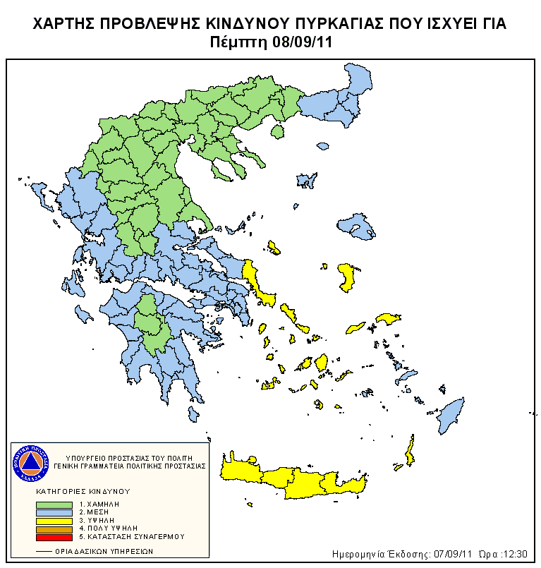 Ημερήσιος Χάρτης Πρόβλεψης Κινδύνου Πυρκαγιάς 08/09/2011