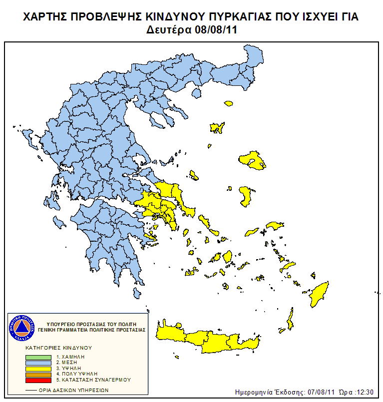 Ημερήσιος Χάρτης Πρόβλεψης Κινδύνου Πυρκαγιάς 08/08/2011