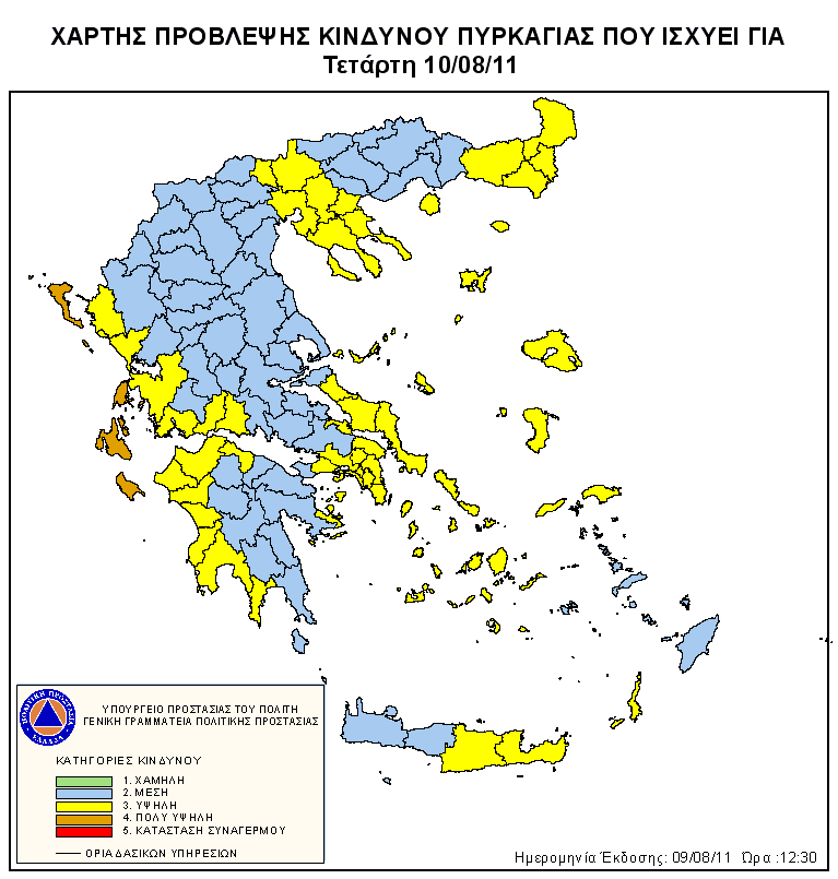 Ημερήσιος Χάρτης Πρόβλεψης Κινδύνου Πυρκαγιάς 10/08/2011