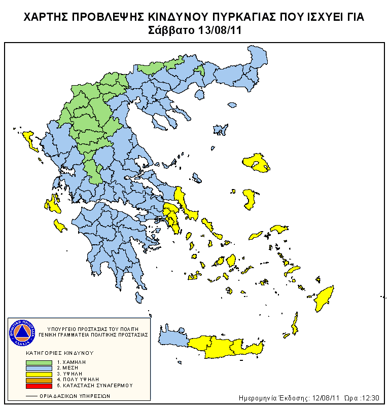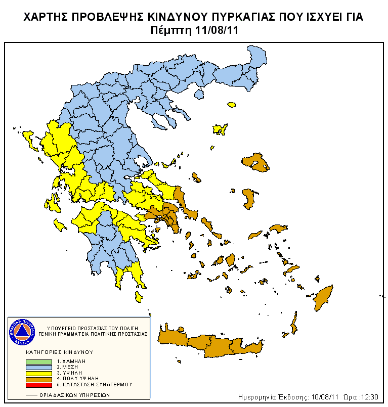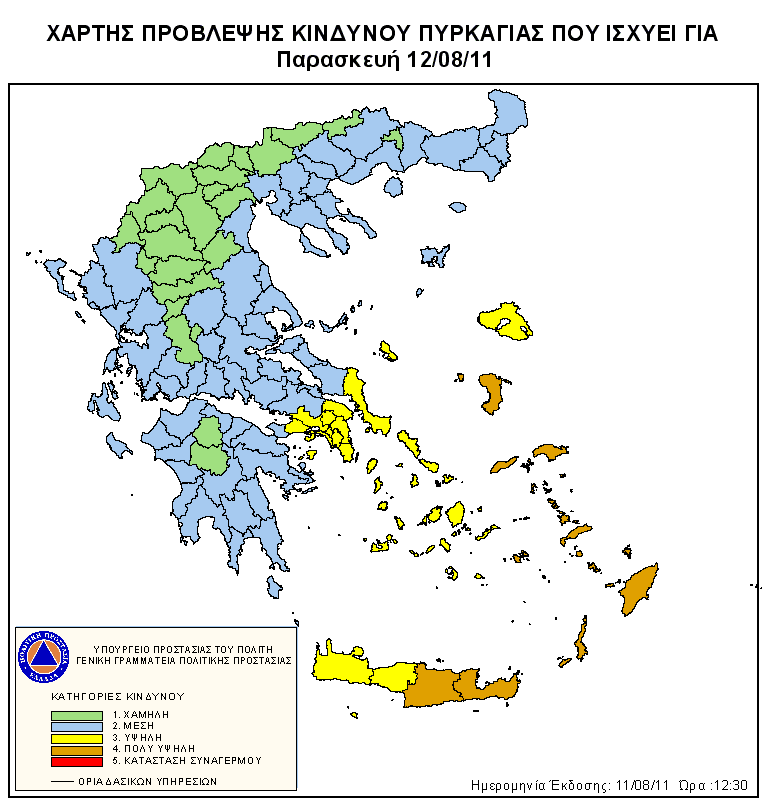 Ημερήσιος Χάρτης Πρόβλεψης Κινδύνου Πυρκαγιάς 12/08/2011