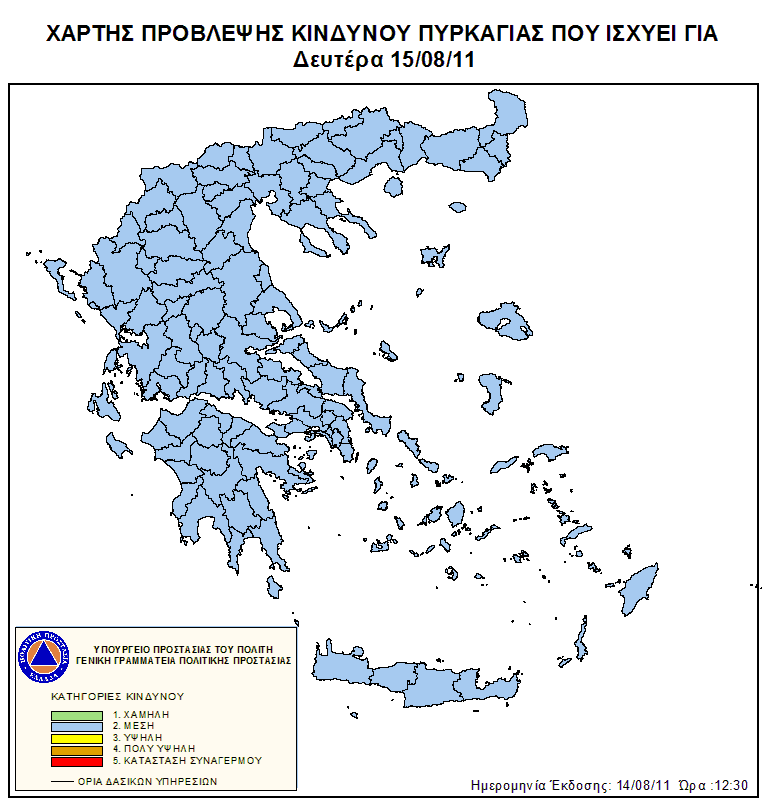 Ημερήσιος Χάρτης Πρόβλεψης Κινδύνου Πυρκαγιάς 15/08/2011