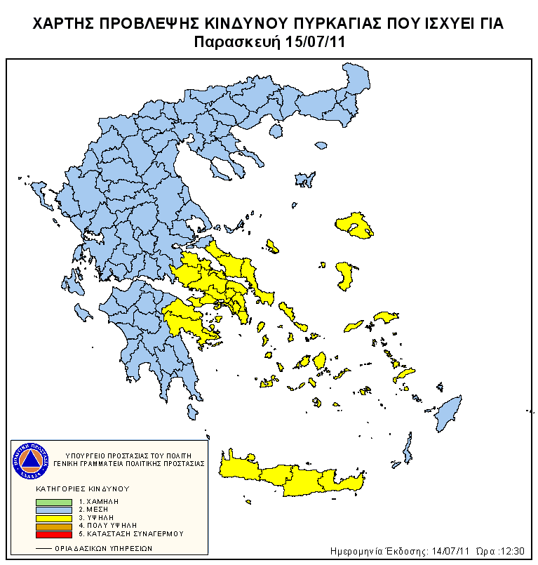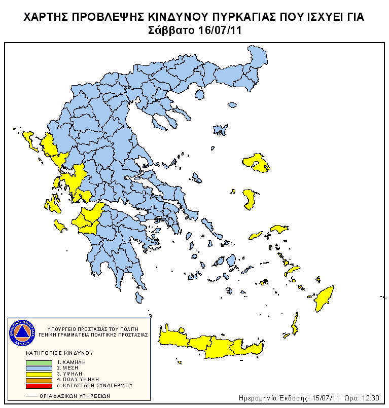Ημερήσιος Χάρτης Πρόβλεψης Κινδύνου Πυρκαγιάς 15/07/2011