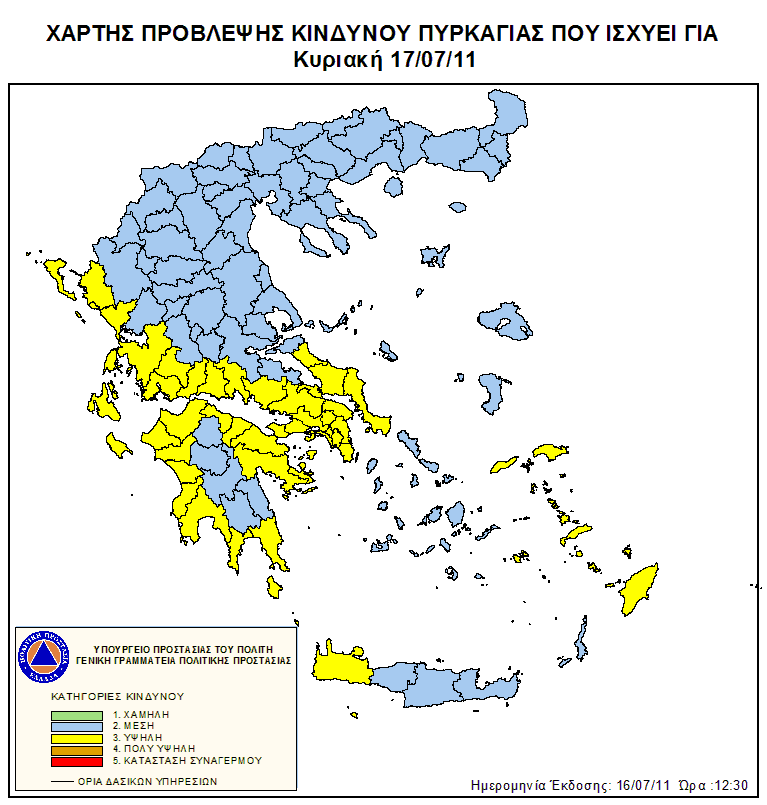 Ημερήσιος Χάρτης Πρόβλεψης Κινδύνου Πυρκαγιάς 16/07/2011