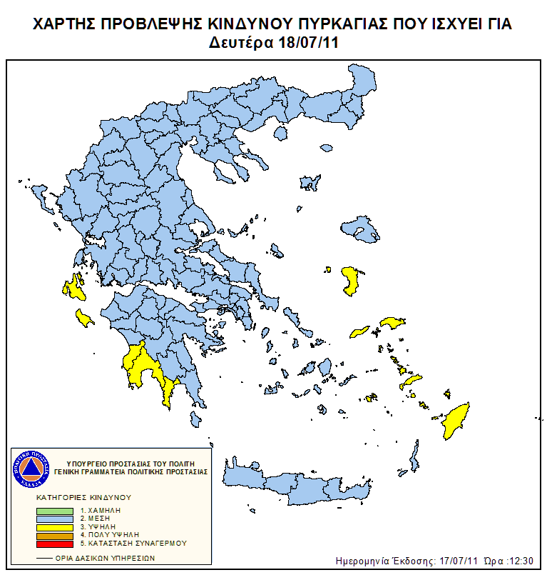 Ημερήσιος Χάρτης Πρόβλεψης Κινδύνου Πυρκαγιάς 18/07/2011