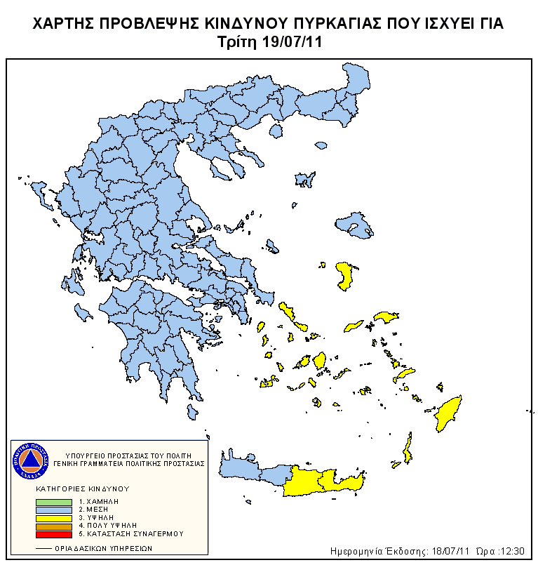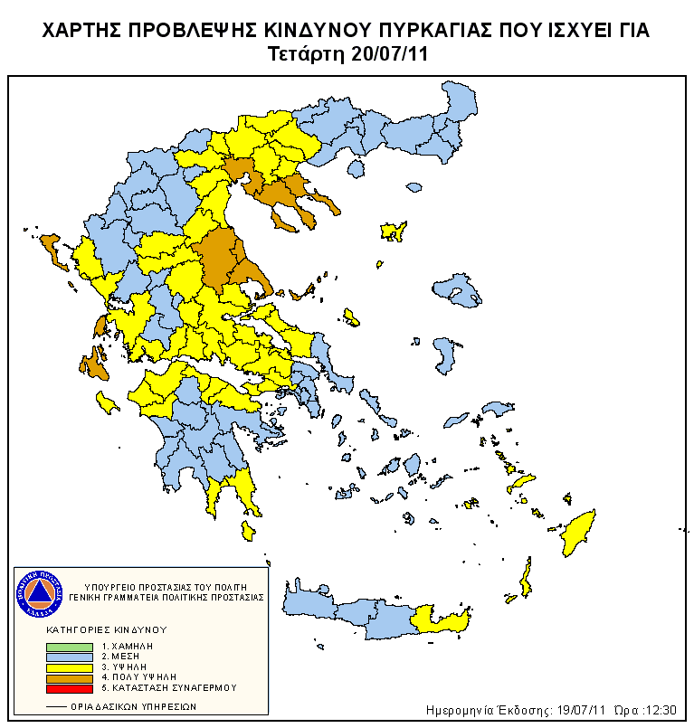 Ημερήσιος Χάρτης Πρόβλεψης Κινδύνου Πυρκαγιάς 19/07/2011