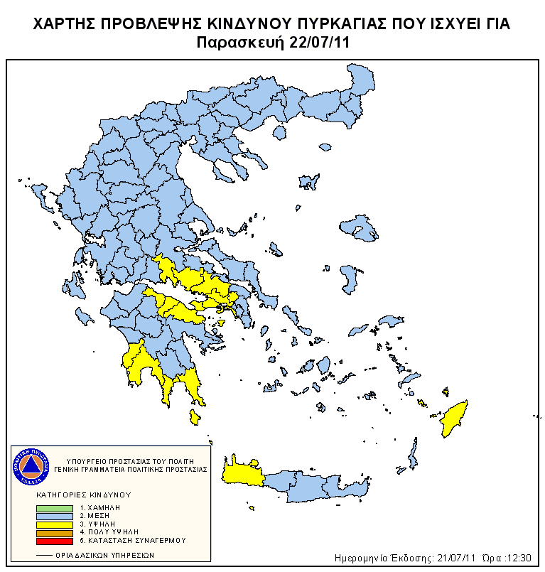 Ημερήσιος Χάρτης Πρόβλεψης Κινδύνου Πυρκαγιάς 22/07/2011