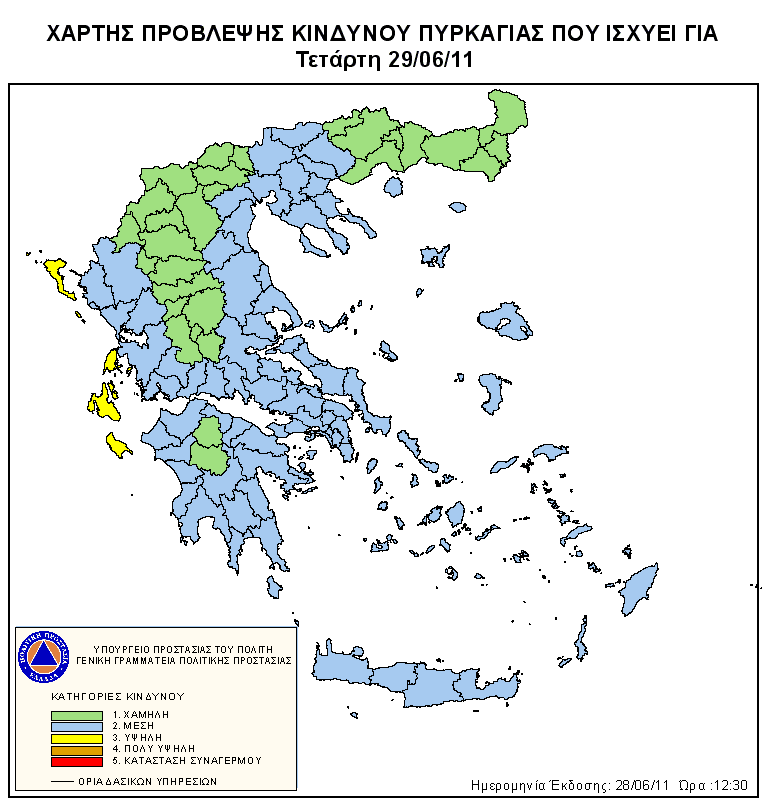 Ημερήσιος Χάρτης Πρόβλεψης Κινδύνου Πυρκαγιάς 29/06/2011