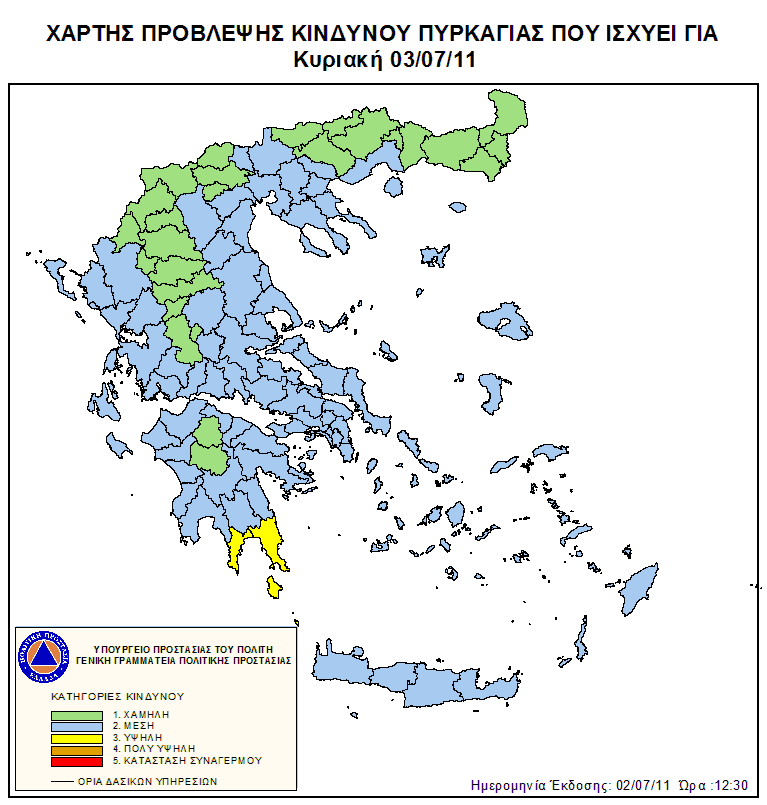 Ημερήσιος Χάρτης Πρόβλεψης Κινδύνου Πυρκαγιάς 02/07/2011
