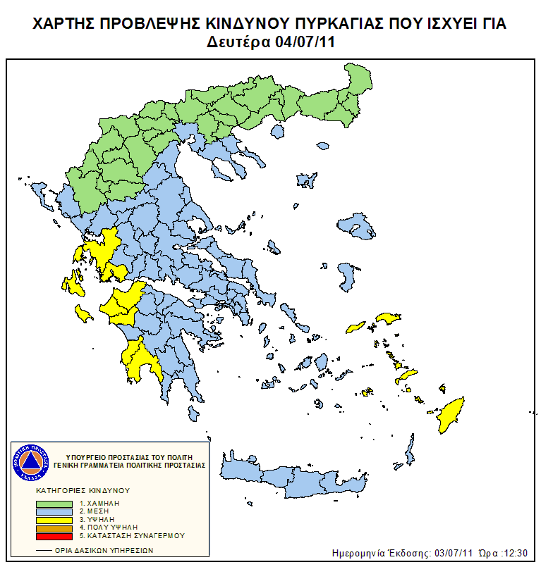 Ημερήσιος Χάρτης Πρόβλεψης Κινδύνου Πυρκαγιάς 04/07/2011
