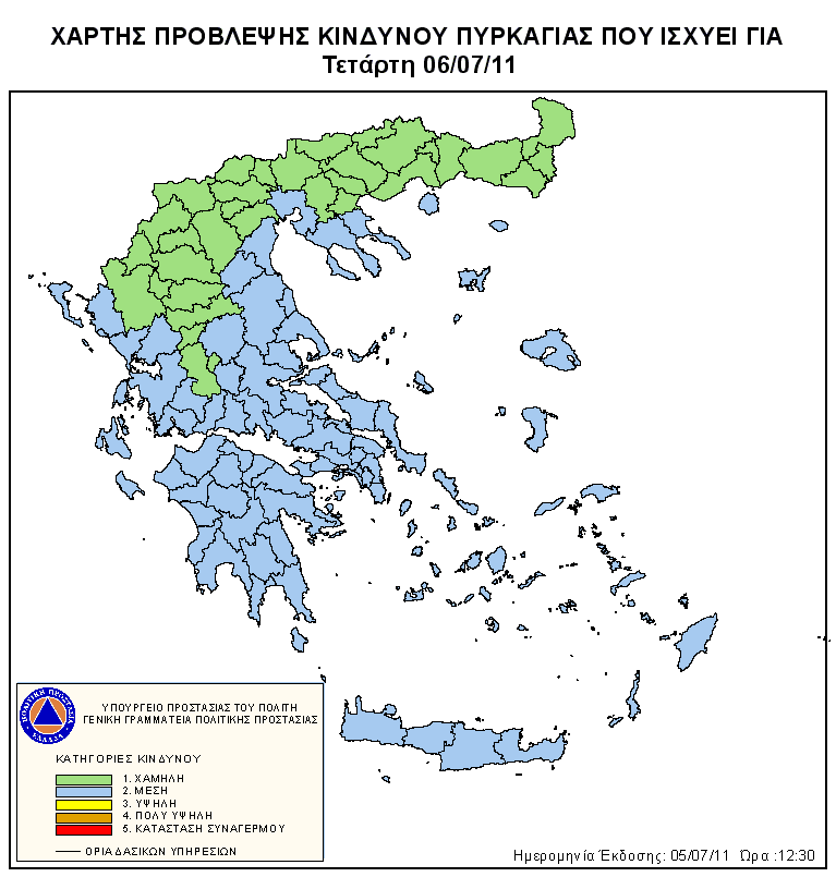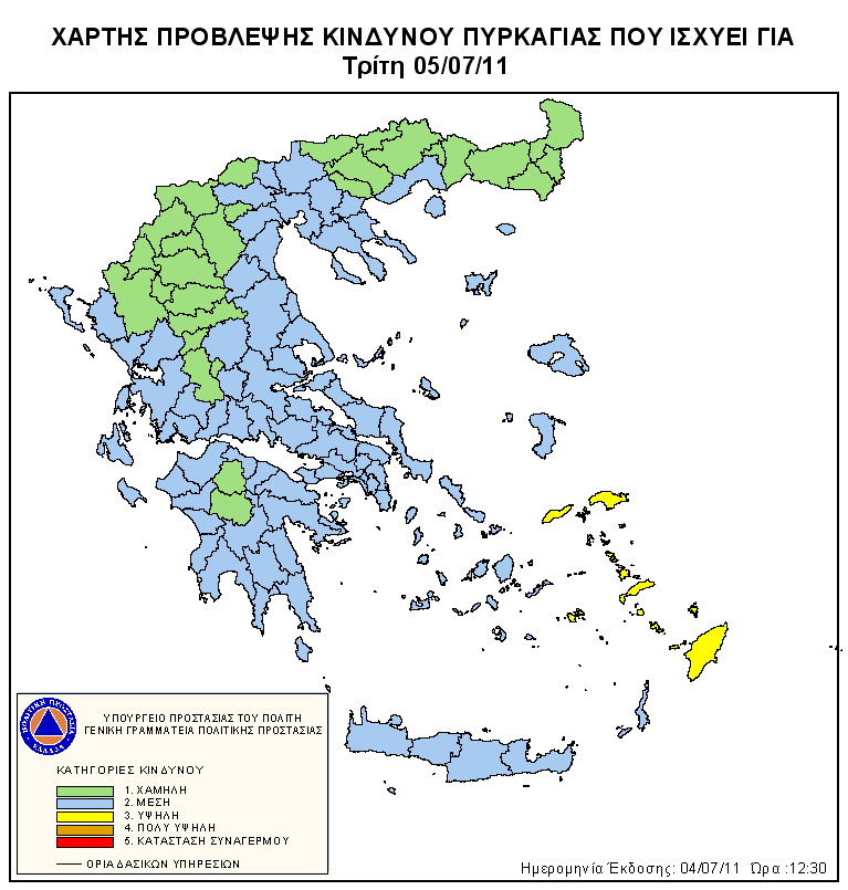 Ημερήσιος Χάρτης Πρόβλεψης Κινδύνου Πυρκαγιάς 05/07/2011