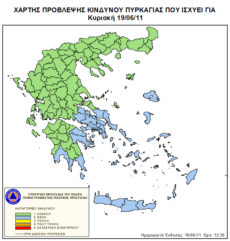 Ημερήσιος Χάρτης Πρόβλεψης Κινδύνου Πυρκαγιάς 19/06/2011