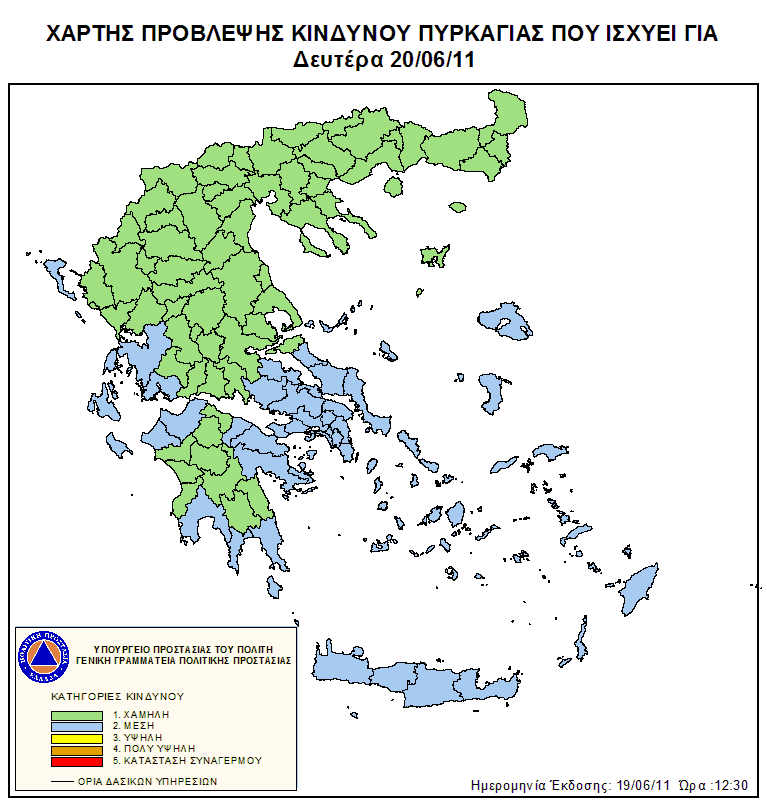 Ημερήσιος Χάρτης Πρόβλεψης Κινδύνου Πυρκαγιάς 20/06/2011