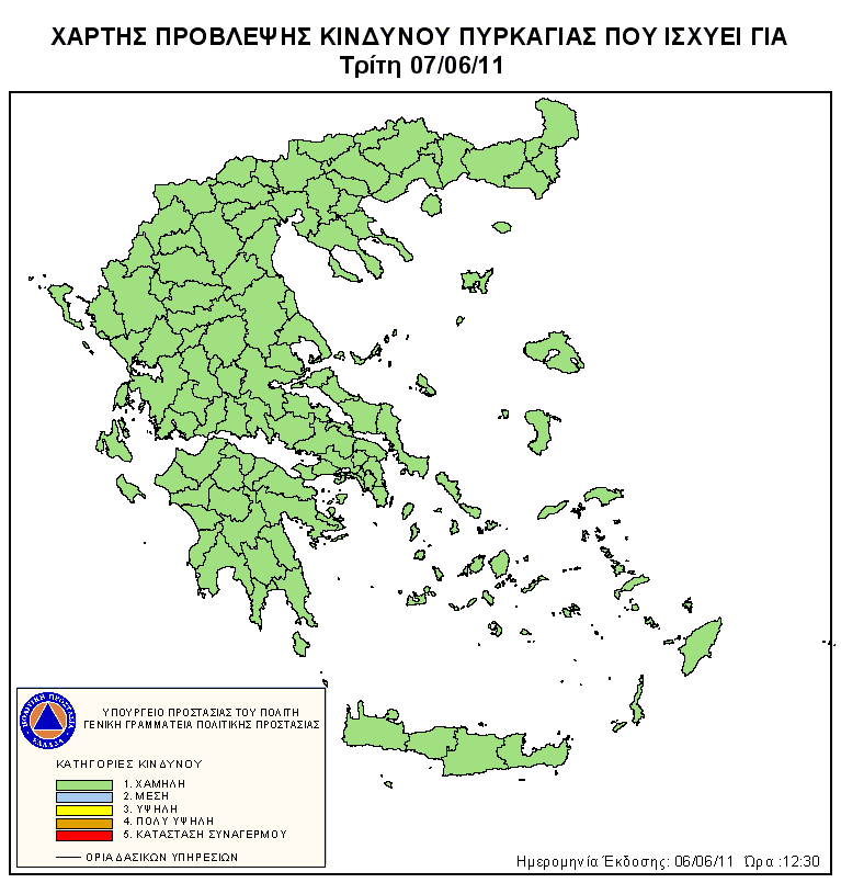 Ημερήσιος Χάρτης Πρόβλεψης Κινδύνου Πυρκαγιάς 06/06/2011