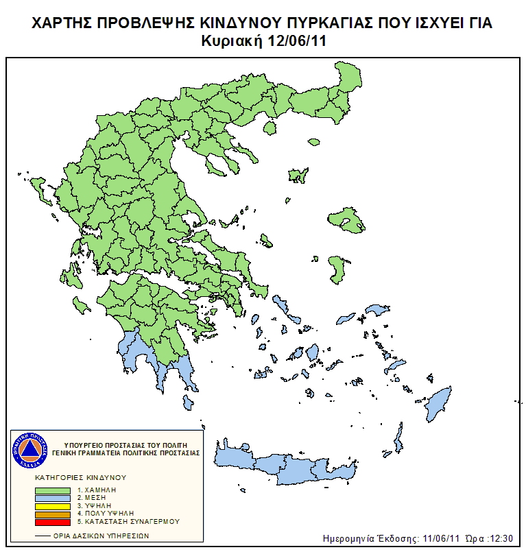 Ημερήσιος Χάρτης Πρόβλεψης Κινδύνου Πυρκαγιάς 12/06/2011