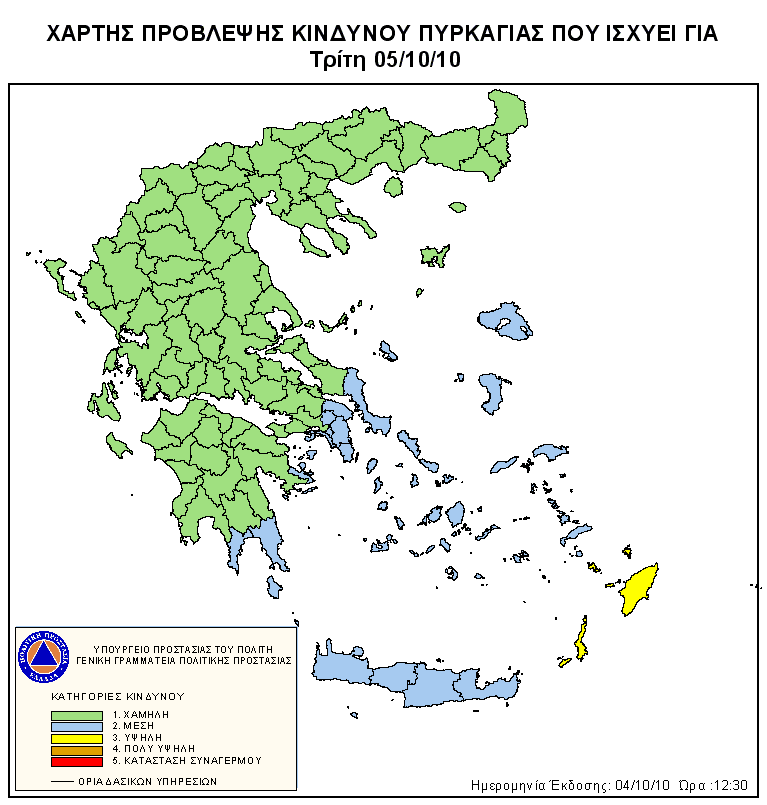 Ημερήσιος Χάρτης Πρόβλεψης Κινδύνου Πυρκαγιάς 05/10/2010
