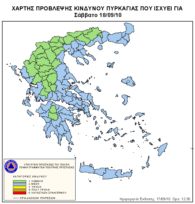 Ημερήσιος Χάρτης Πρόβλεψης Κινδύνου Πυρκαγιάς 17/09/2010