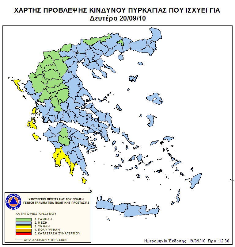 Ημερήσιος Χάρτης Πρόβλεψης Κινδύνου Πυρκαγιάς 19/09/2010