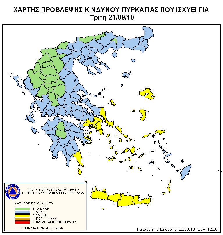Ημερήσιος Χάρτης Πρόβλεψης Κινδύνου Πυρκαγιάς 20/09/2010