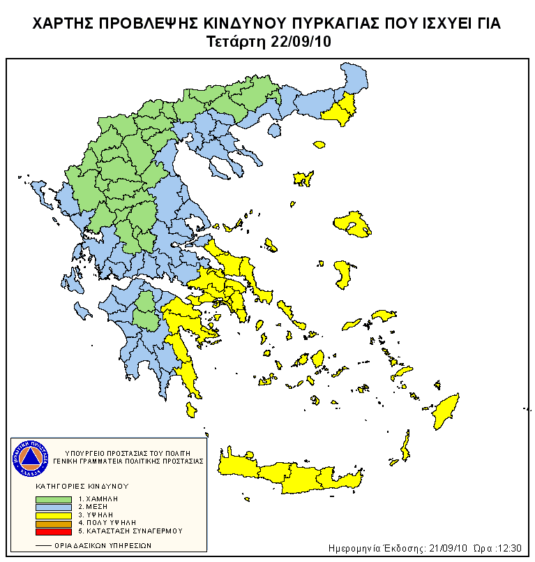 Ημερήσιος Χάρτης Πρόβλεψης Κινδύνου Πυρκαγιάς 22/09/2010