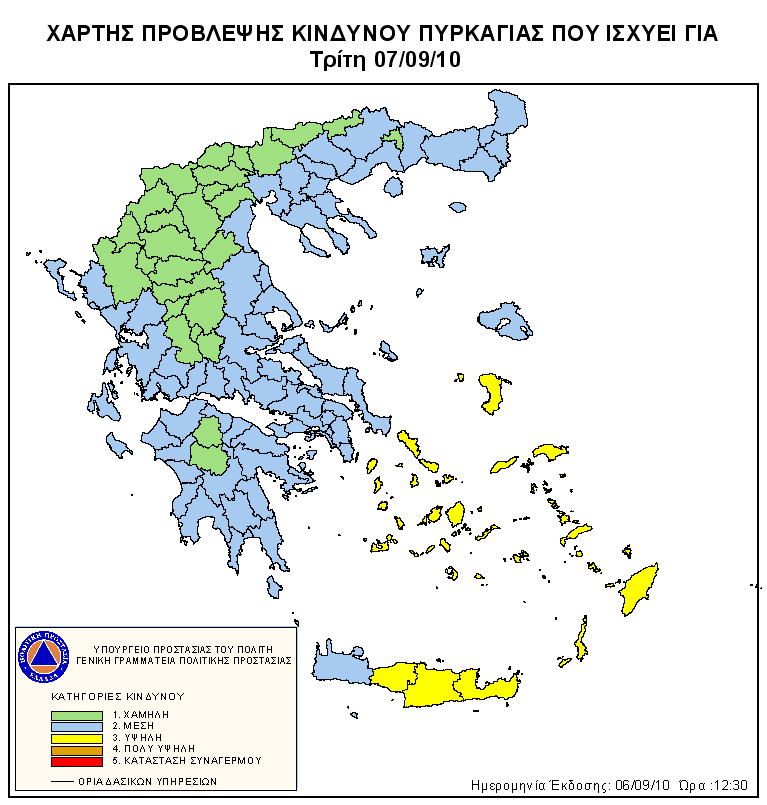 Ημερήσιος Χάρτης Πρόβλεψης Κινδύνου Πυρκαγιάς 12/09/2010