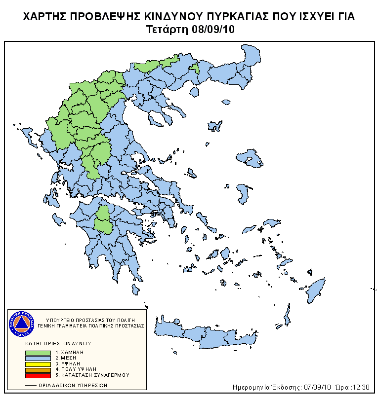 Ημερήσιος Χάρτης Πρόβλεψης Κινδύνου Πυρκαγιάς 08/09/2010