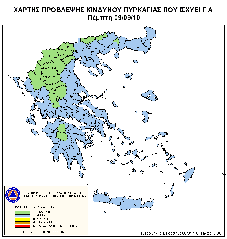 Ημερήσιος Χάρτης Πρόβλεψης Κινδύνου Πυρκαγιάς 09/09/2010