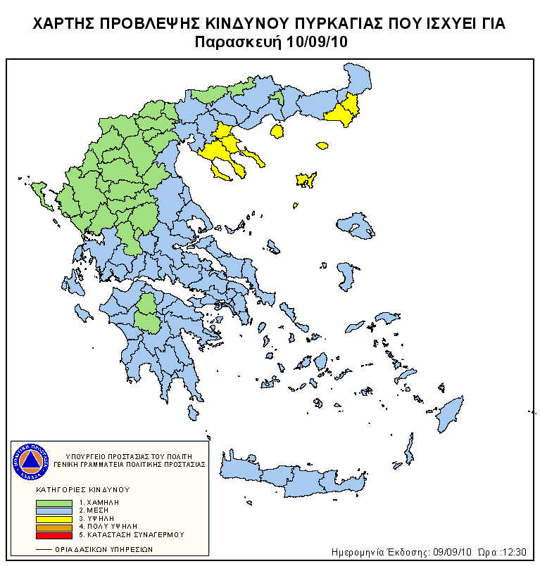 Ημερήσιος Χάρτης Πρόβλεψης Κινδύνου Πυρκαγιάς 10/09/2010