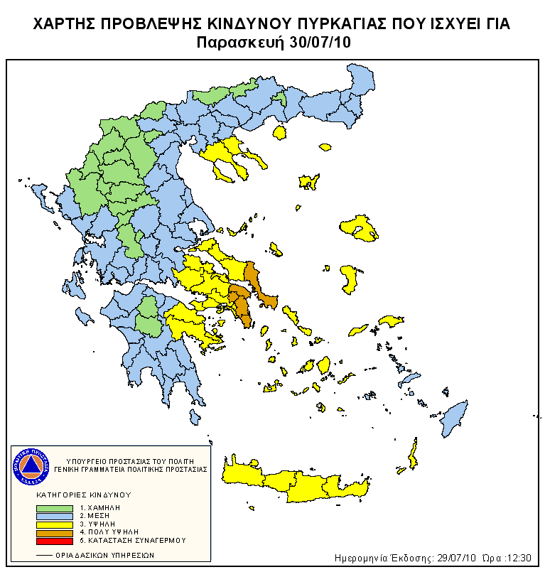 Ημερήσιος Χάρτης Πρόβλεψης Κινδύνου Πυρκαγιάς 29/07/2010