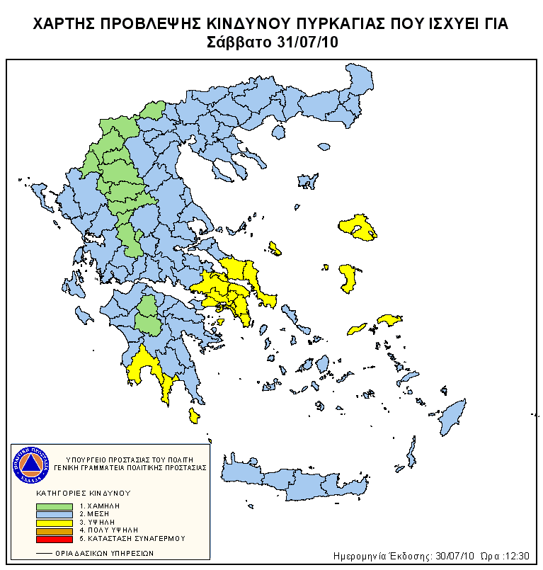 Ημερήσιος Χάρτης Πρόβλεψης Κινδύνου Πυρκαγιάς 30/07/2010