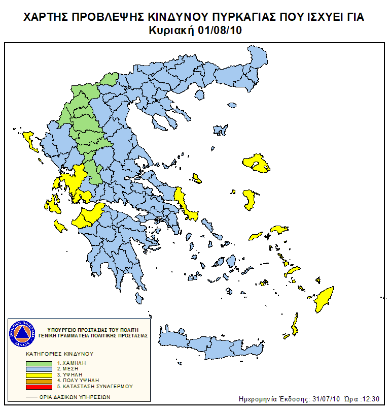 Ημερήσιος Χάρτης Πρόβλεψης Κινδύνου Πυρκαγιάς 01/08/2010