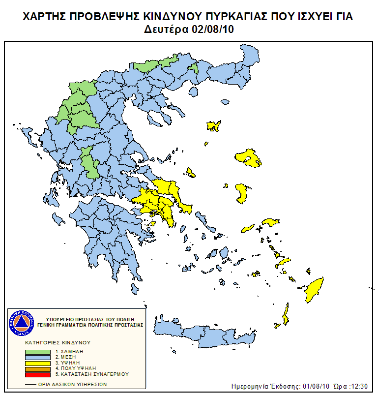 Ημερήσιος Χάρτης Πρόβλεψης Κινδύνου Πυρκαγιάς 02/08/2010