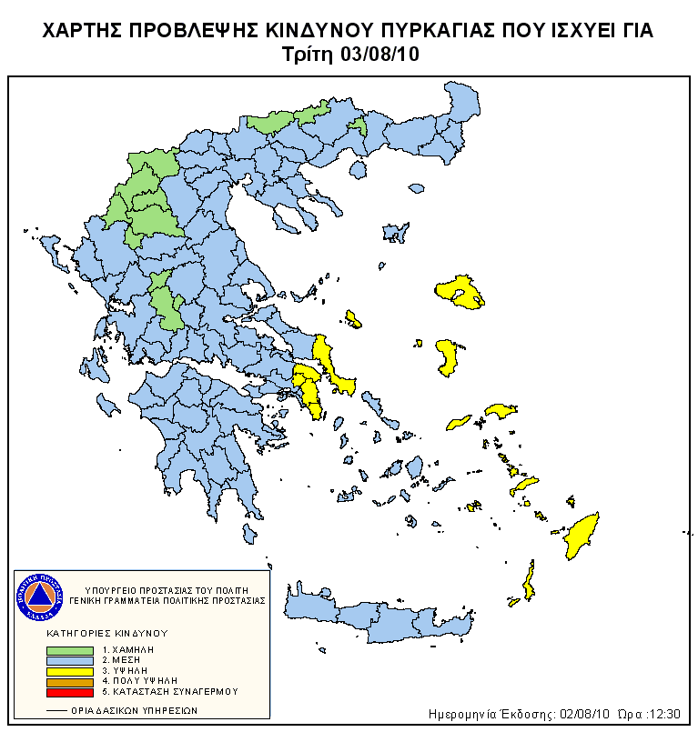 Ημερήσιος Χάρτης Πρόβλεψης Κινδύνου Πυρκαγιάς 03/08/2010